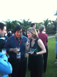 Top left, the African Gala Night stage. Top right, Don Ferencz chatting with Michael Tate of the Australian delegation. Below, Harold Koh and Meg de Guzman.