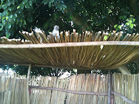 We beached the raft, then walked up a long trail to a bluff over the river, where cold bear and barbequed brochettes were waiting for us. That's what you see in the photo. It is is forbidden to take cameras and things like that on the river, but the organizers take photos for you which they will sell you. But it will be many weeks before we get them.